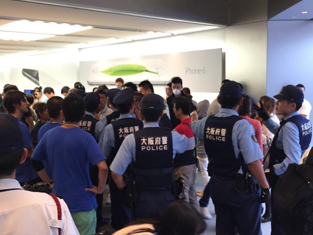 米アップルの新型スマートフォン「iPhone(アイフォーン)6」と「6プラス」が発売さ れた19日、大阪市中央区西心斎橋の「アップルストア心斎橋」では、中国人とみられる客が店内外で大声を上げるなどし、警察官が駆けつける騒ぎになった。